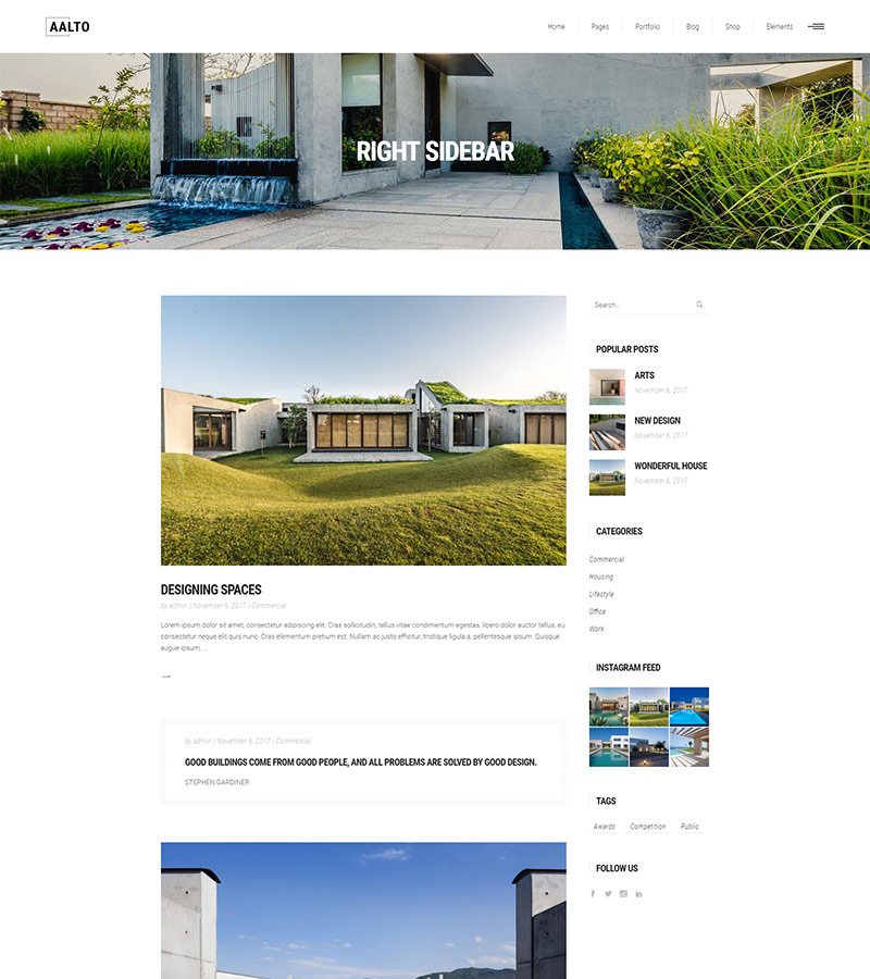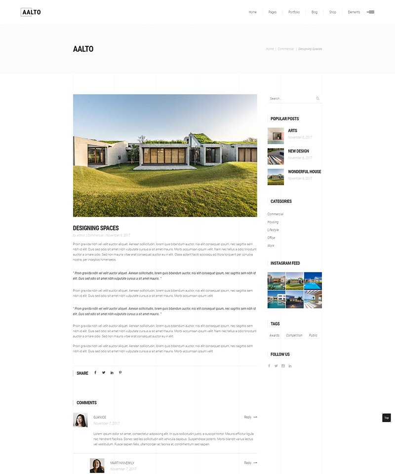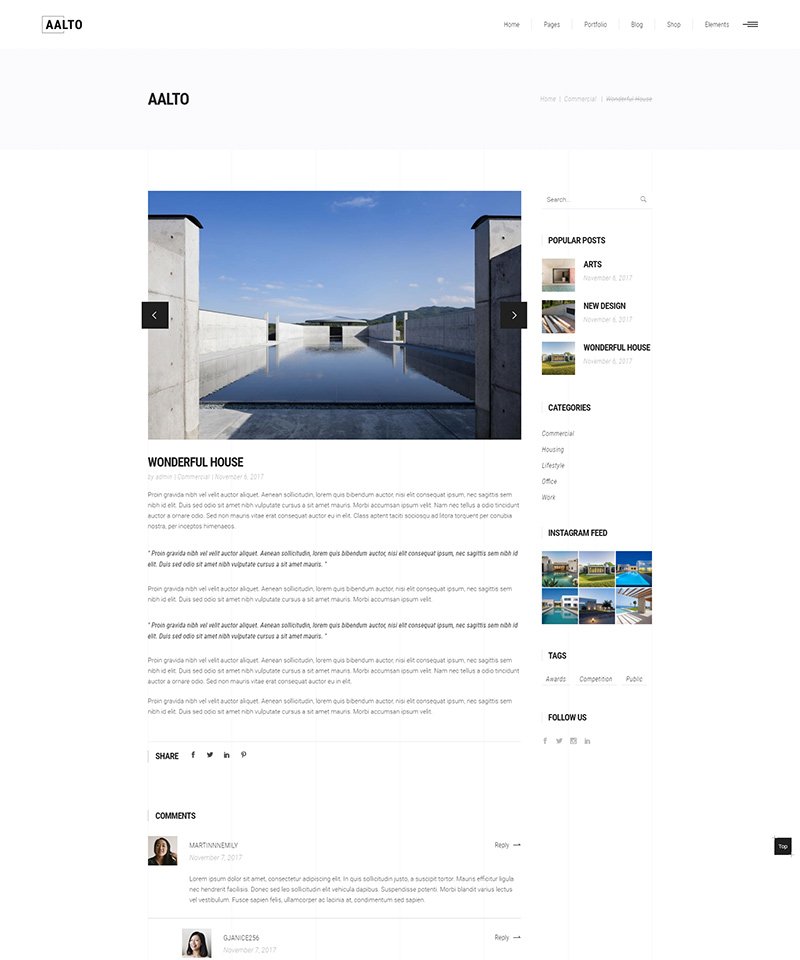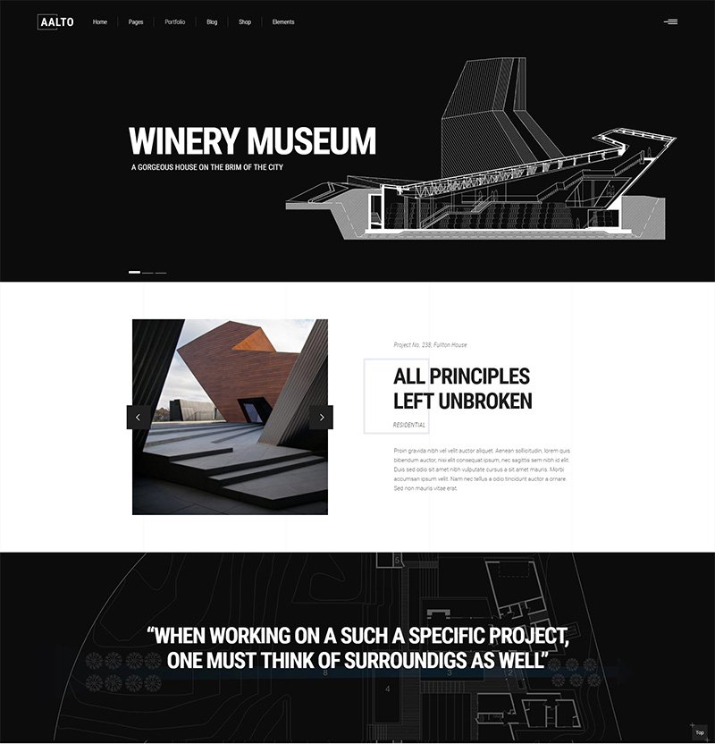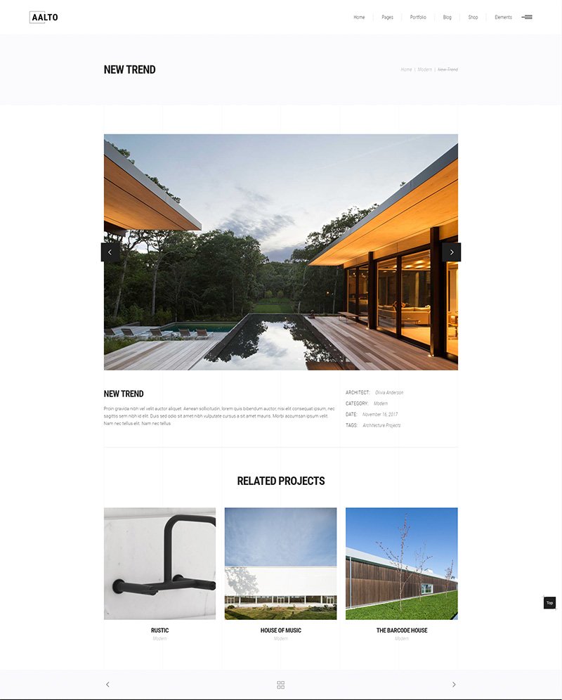 Aalto comes with a wide variety of portfolio lists, sliders & single project layouts.