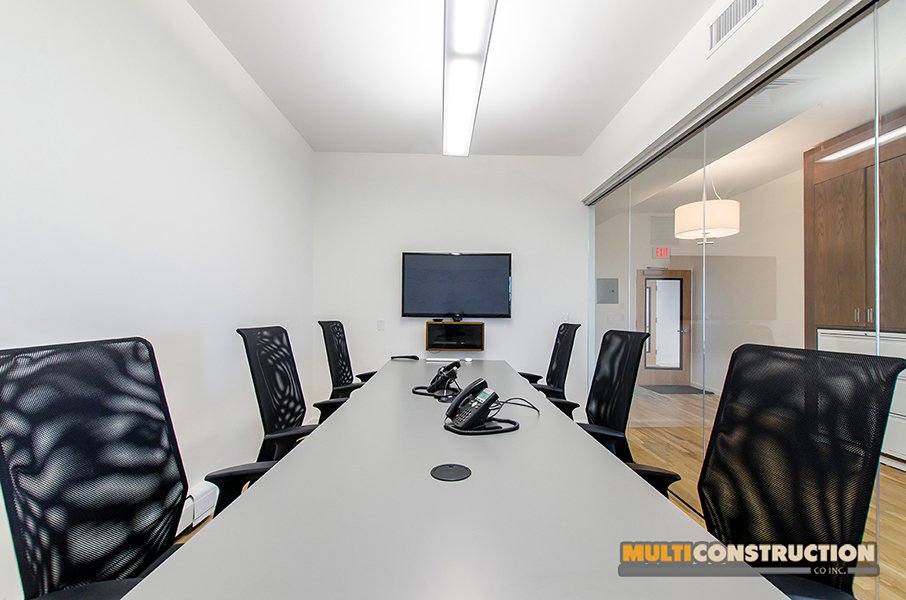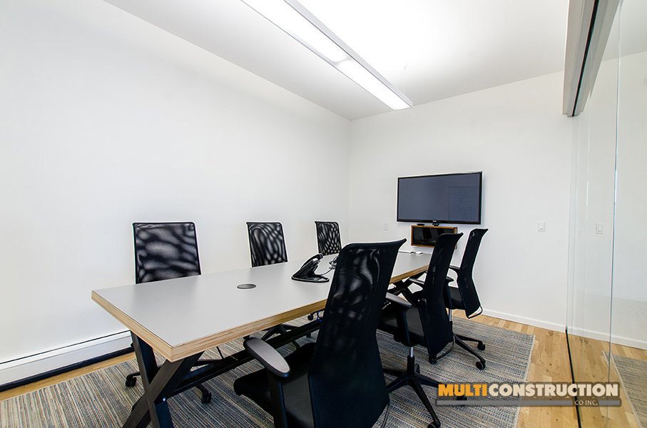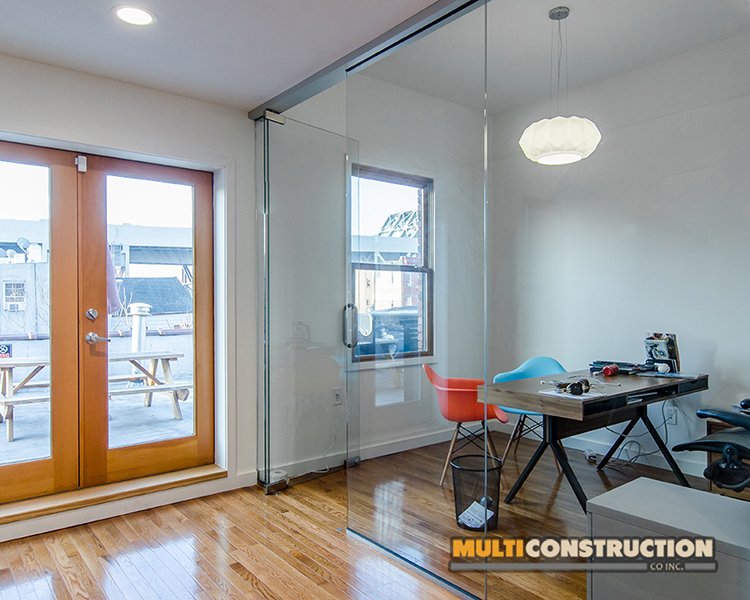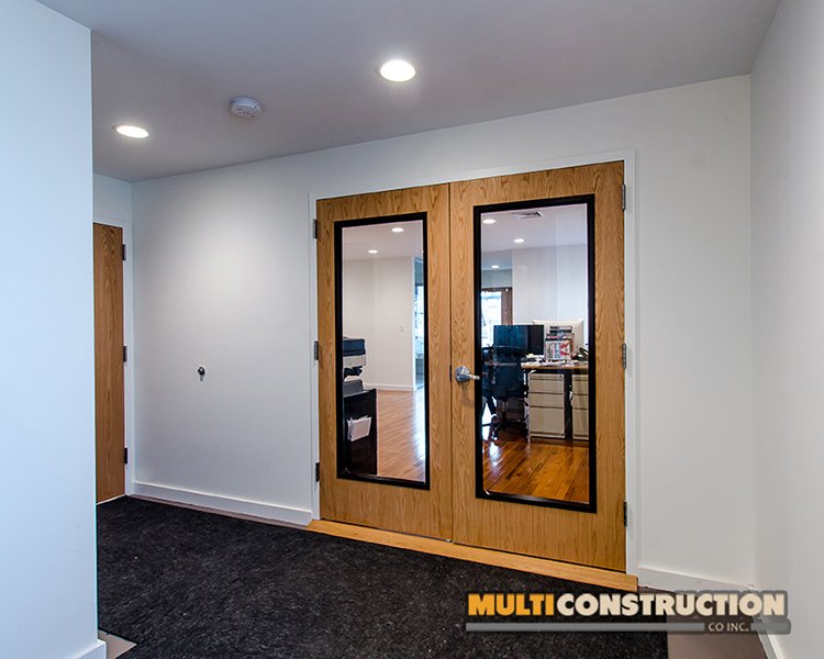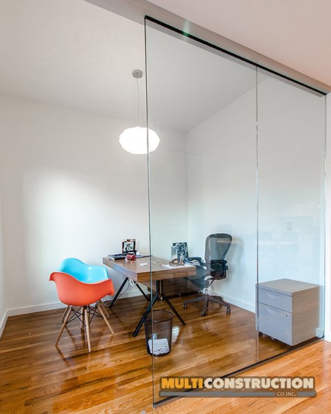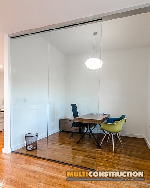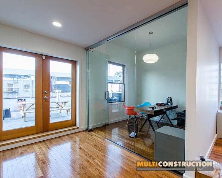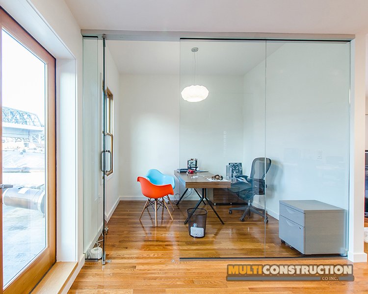 A complete renovation of a two-story corporate office, transforming the space into a modern, functional workplace with glass-partitioned rooms and upgraded interiors.